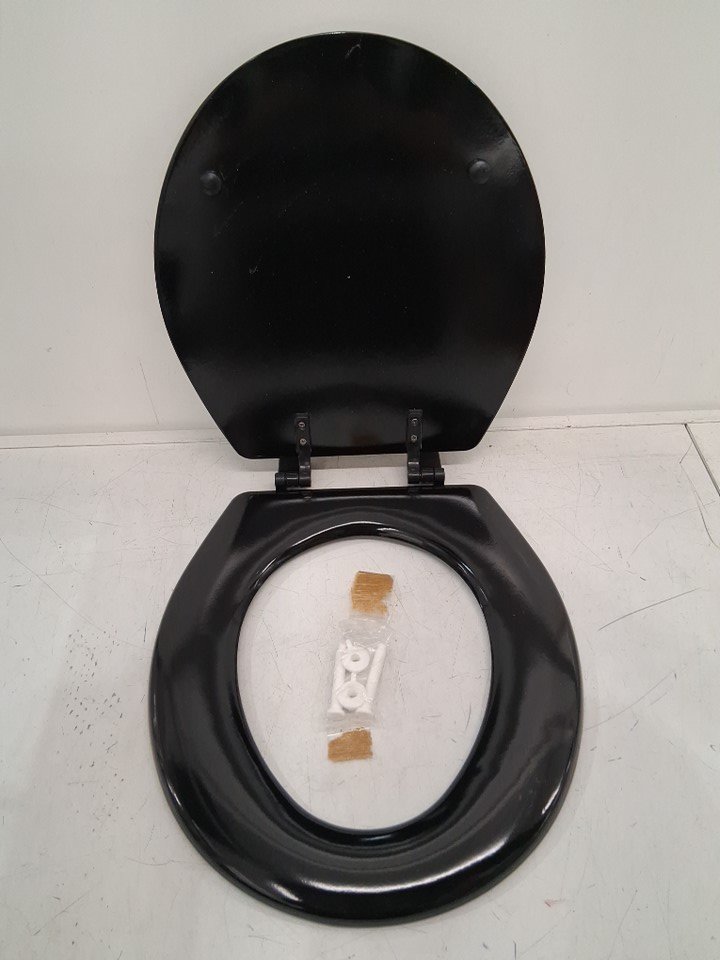 FANTASIA 17" BEVELLED EDGE WOOD TOILET SEAT - BLACK (MODEL: TOWDSTBK04)