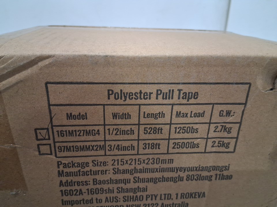 flat polyester pull tape - 1/2" x 528ft - 1250lb Tensile Capacity - white (model: 161m127mg4)