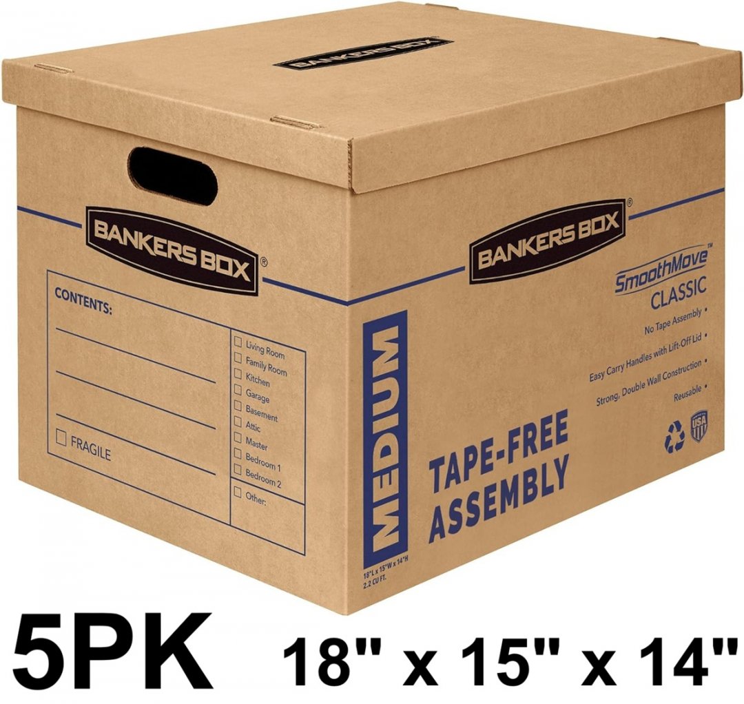 5PK Bankers Box Smoothmove Classic Moving Box - Medium (18"X15"X14") (MODEL: 77172)