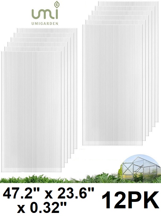 12PK UMIGARDEN TWIN-WALL WATERPROOF POLYCARBONATE OUTDOOR GREENHOUSE ROOF SHEETS - 47.2" X 23.6" X 0.32"