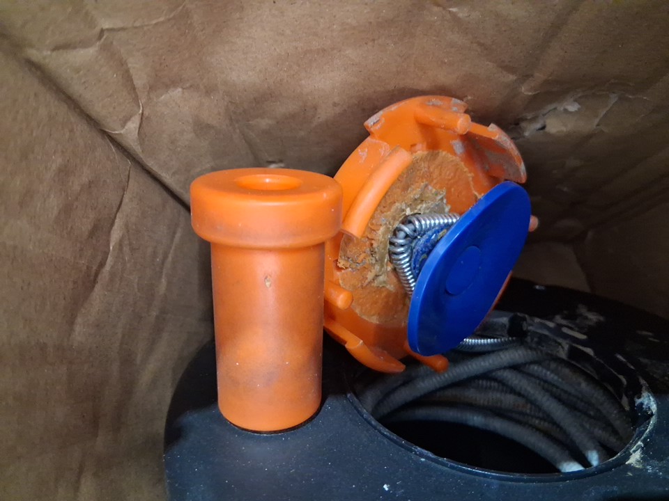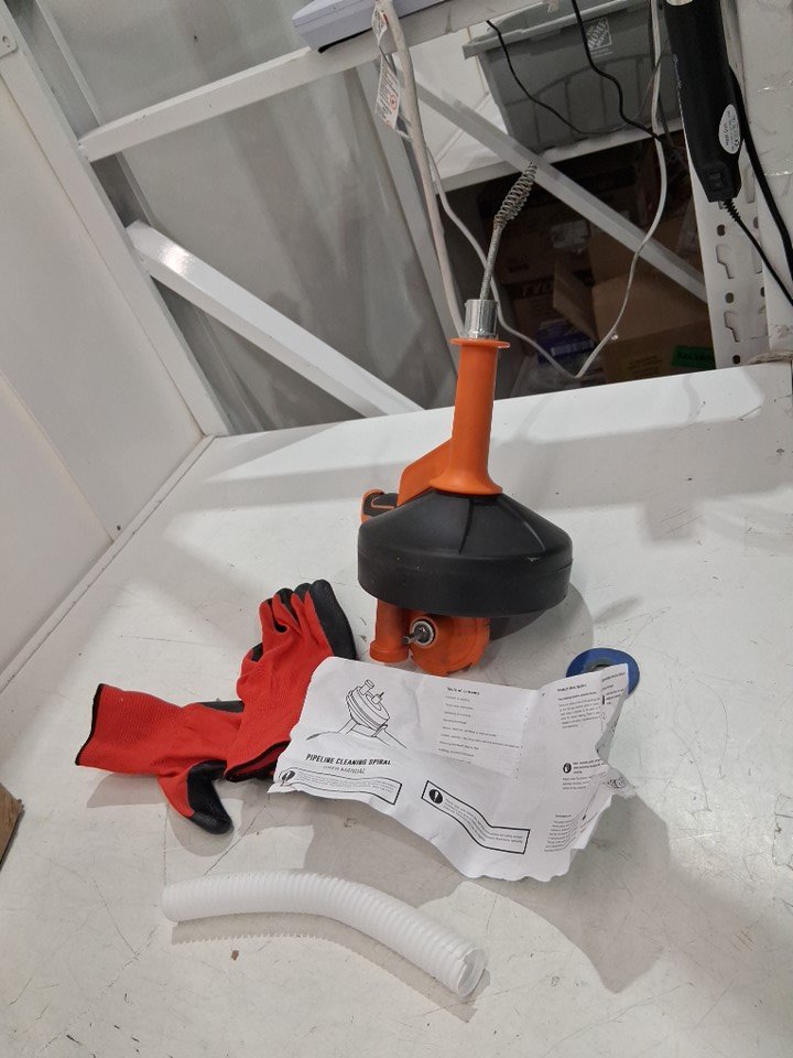 There is some dirt on drain auger from use, and it appears one of the pieces is broken off, see photos.
