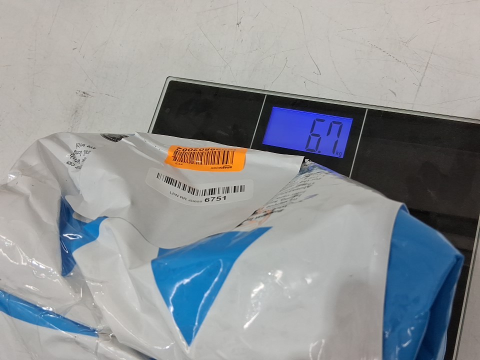 Approximately half of the litter remains (~14.75lbs) from previous gentle use, see photos.
