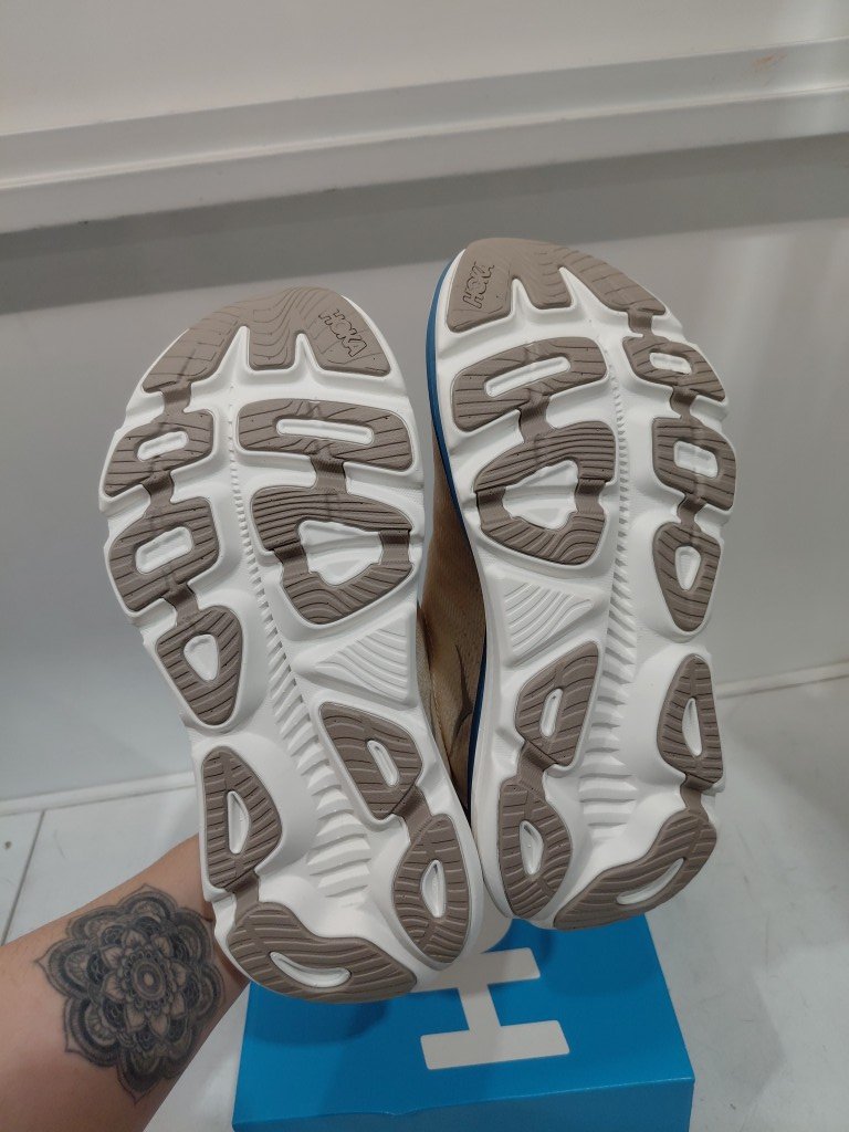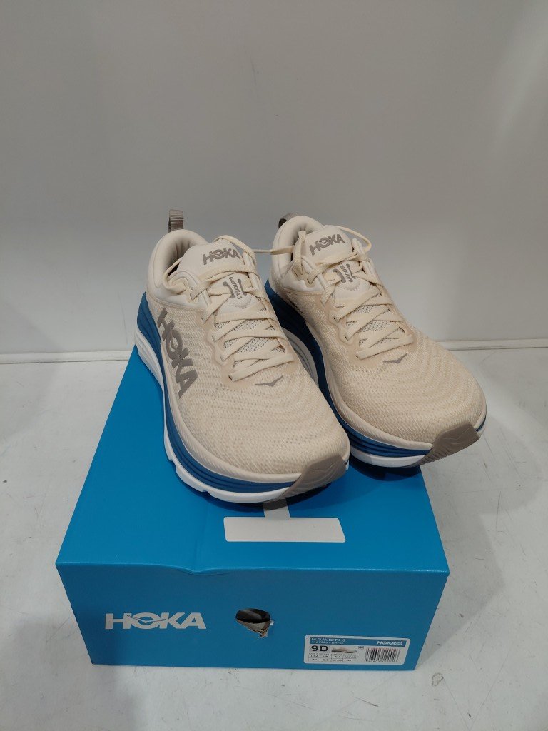 mens hoka gaviota 5 running shoes - 9 - beige/blue/white (model: 1127929)