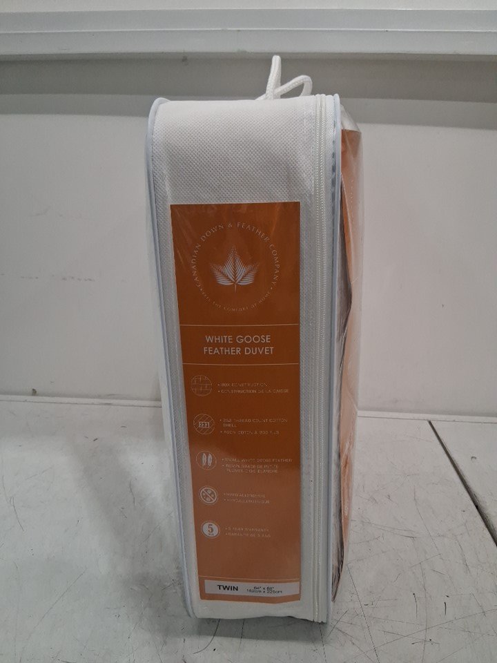 CANADIAN DOWN AND FEATHER WHITE GOOSE FEATHER DUVET - 233 thread count - TWIN - 64" X 86" - WHITE