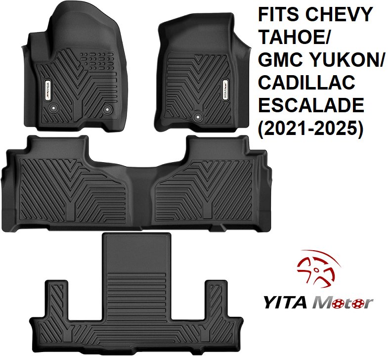 YITAMOTOR 3 rows Floor Mats for Chevrolet Tahoe/GMC Yukon/Cadillac Escalade (2021-2025) with 2nd Row Bucket Seats - Custom Fit, TPE All-Weather - black (model: cifmfm-1194)