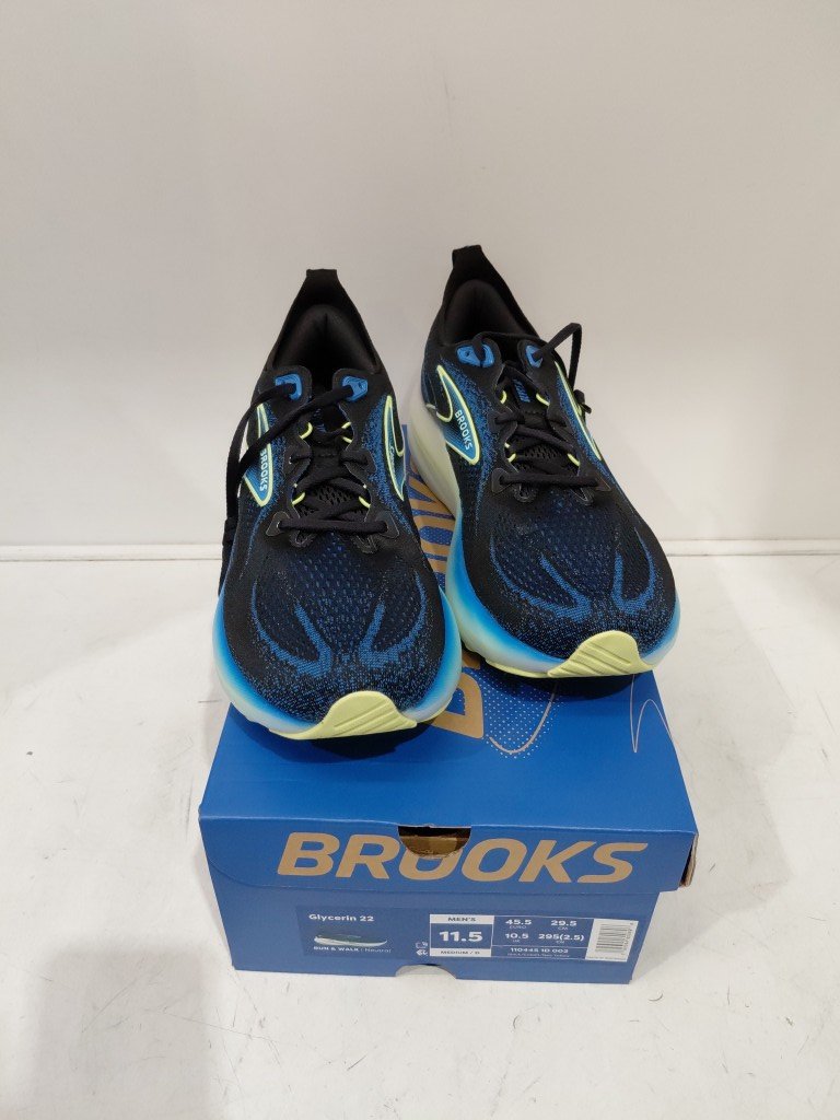 MEN'S BROOKS Glycerin GTS 22 SNEAKERS - 11.5 - BLACK/COLBALT/NEO YELLOW (MODEL: 110445 1D 002)
