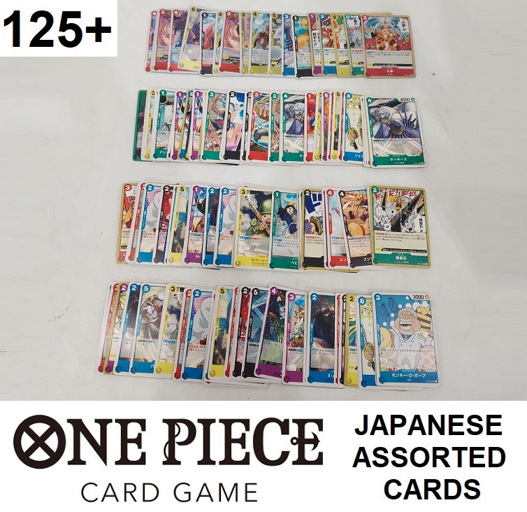 125+ ASSORTED ONE PIECE CARD GAME JAPANESE SINGLES - INCLUDES COMMONS, RARE CARDS, & FOIL CARDS *SEE PHOTOS*