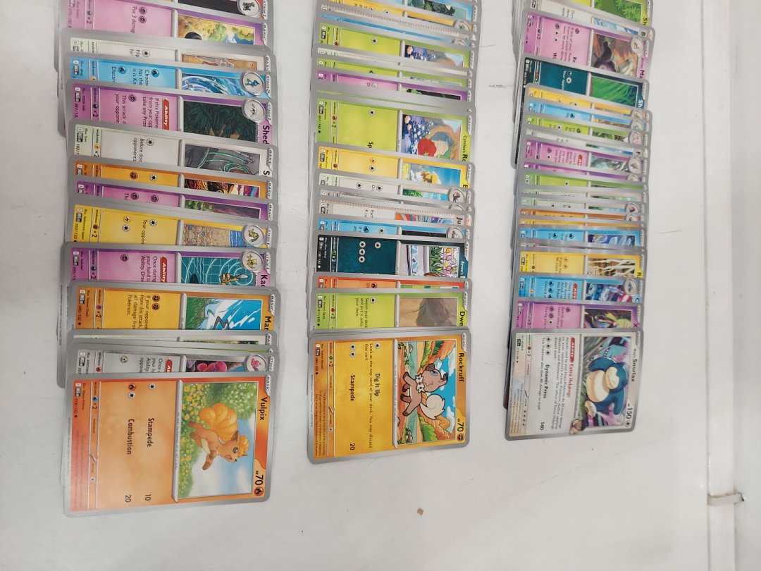 100 ASSORTED POKEMON TRADING CARDs including foil cards and reverse foils from assorted tcg sets