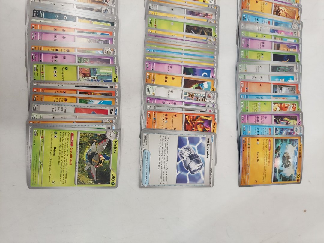 100 ASSORTED POKEMON TRADING CARDs including foil cards and reverse foils from assorted tcg sets
