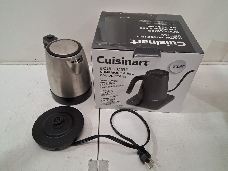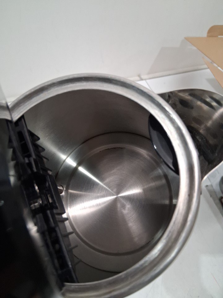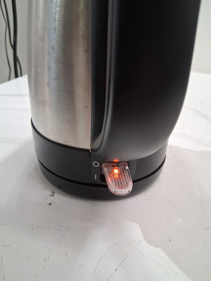 There is some residue inside the kettle indicating previous use. Please note that this is a Hamilton Beach kettle packaged in a Cuisinart box (see photos) Tested for power
