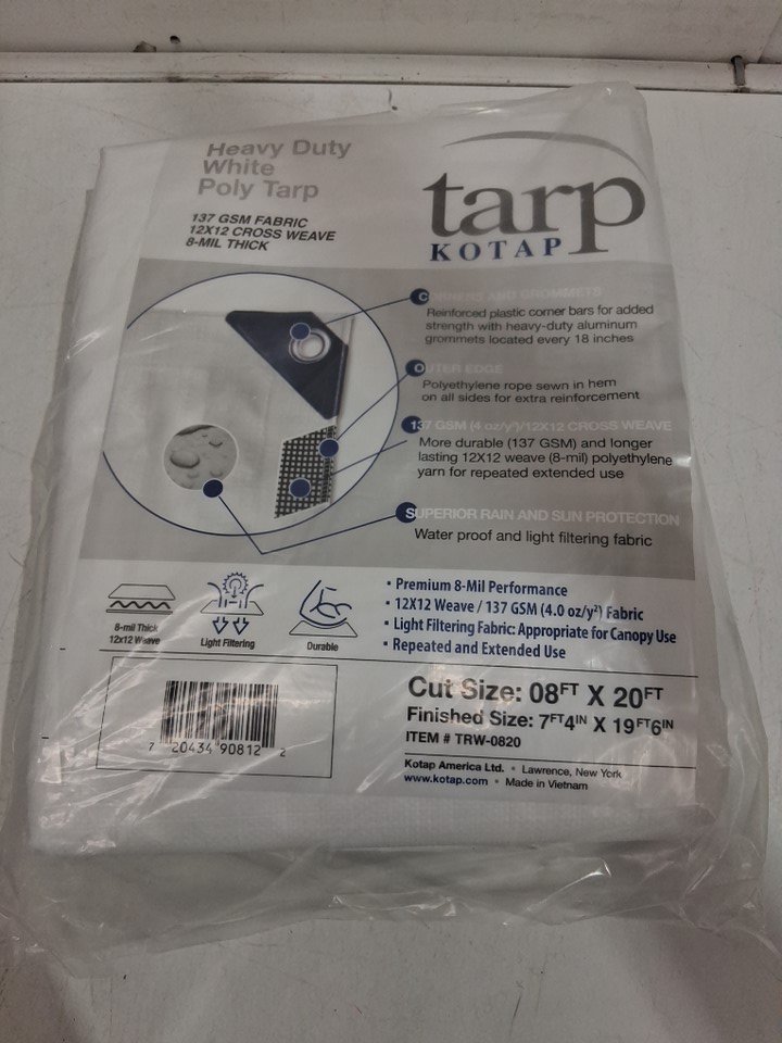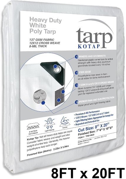 Kotap Heavy-Duty Protection Tarp 137 gsm - 8ft x 20ft - white (model: TRW-0820)