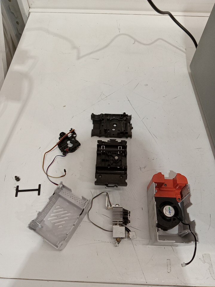 Item shows signs of being previously used prior to being returned (there are markings on the build plate and some minor scuffs/scratches on some parts of the housing of the item. Item being marked with issue as the hot end/nozzle assembly as been completely pulled apart and the customer will need to replace the entire assembly in order to be able to use the item. Also the spool holder, the u-disk, the allen wrenches, filament sample, nozzle cleaner and grease are missing. Item tested for power only, as we encountered an error as a result of the entire hot end/nozzle assembly being taken apart. See attached photos for everything included with the item and any other accessory/part that might be missing.