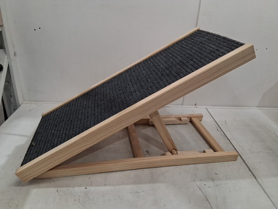 Foldable height adjustable Wooden pet Ramp & Stairs for Beds Sofas Cars - 27.6" x 13.4" x 2.4"-16" - natural/grey - (model: FQZPE_CZ2WXZKJ)
