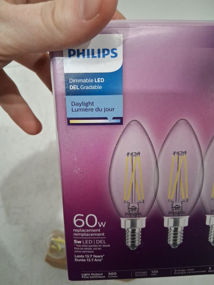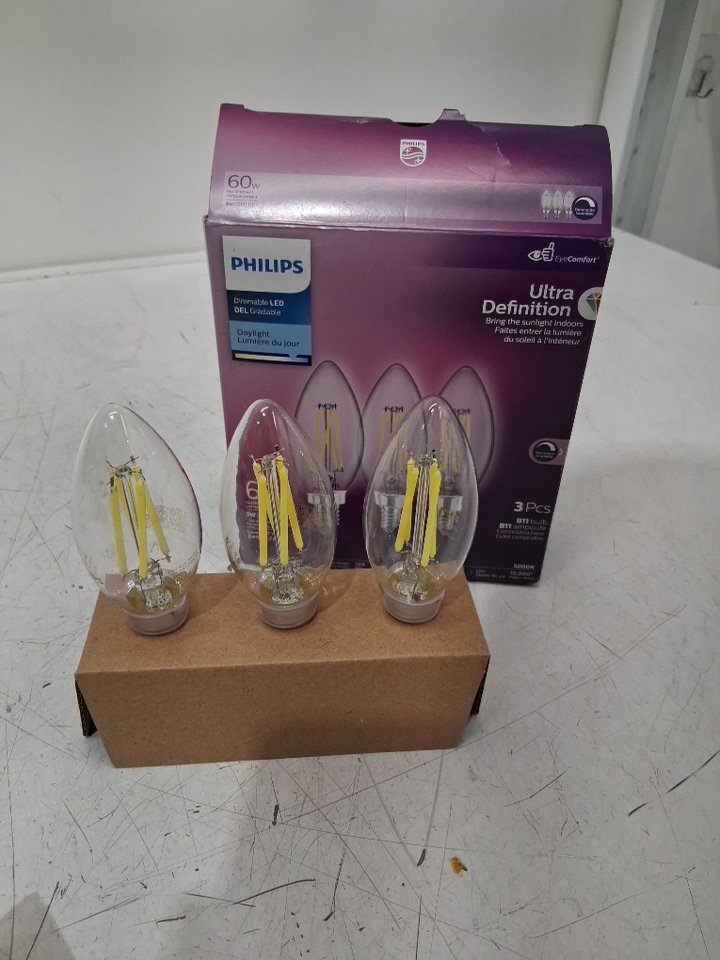 3PK PHILIPS ULTRA DEFINITION CHANDELIER CANDELABRA BASE LIGHT BULB - B11 - 60W - 500LM - 5000K