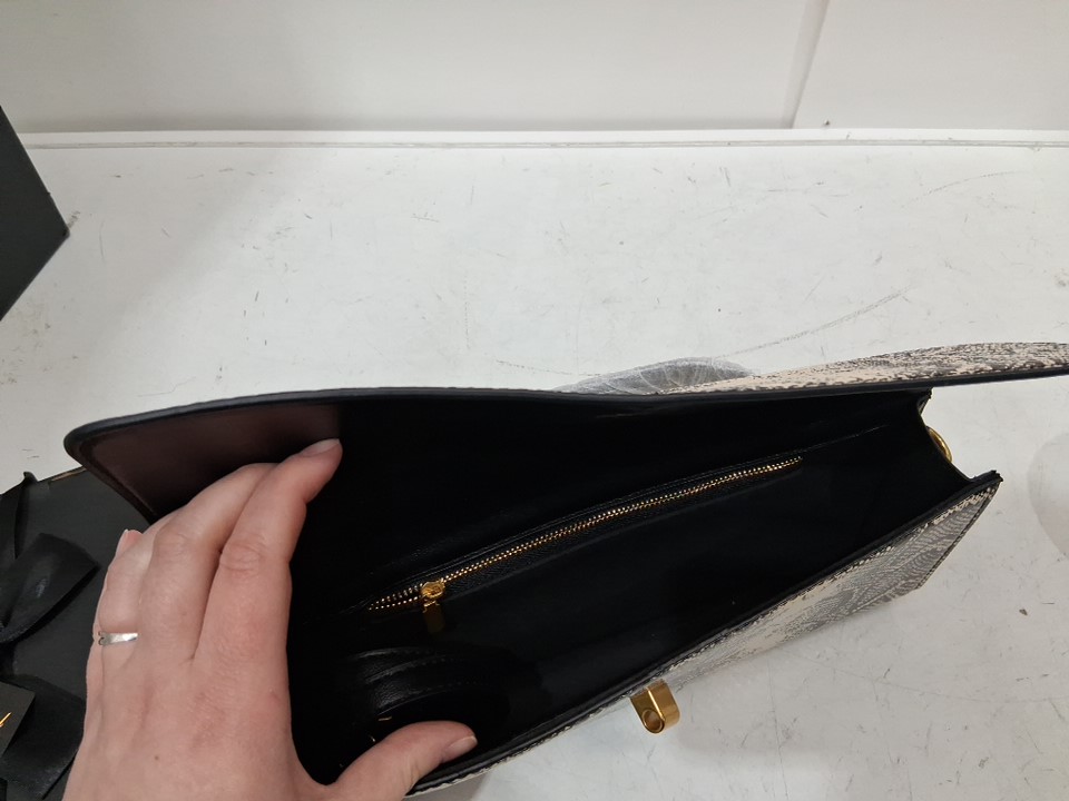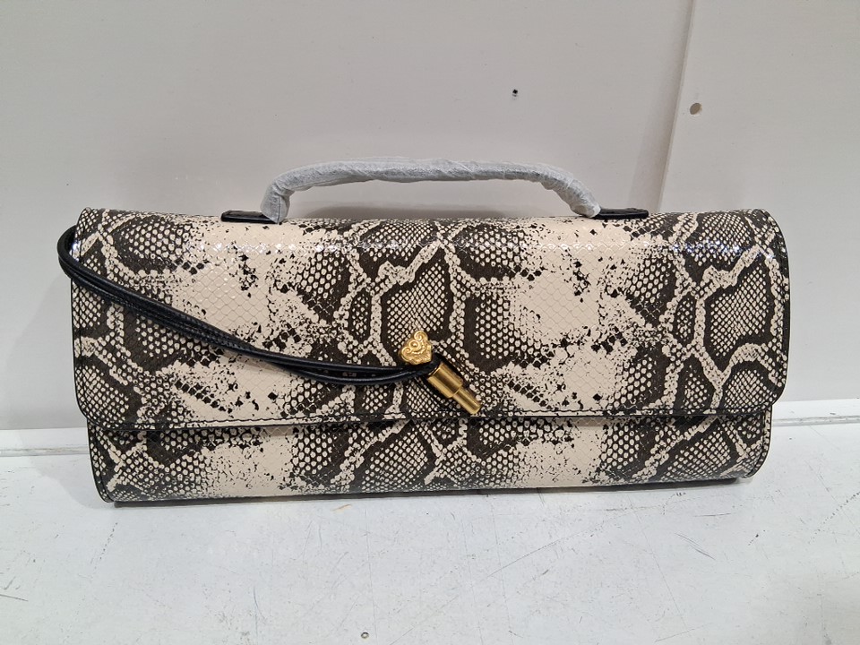 faux snake skin clutch purse with shoulder strap and pin closure - 12" - brown / black