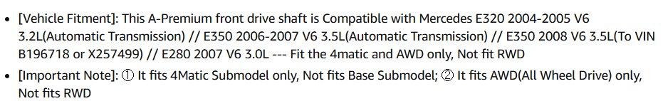 A-Premium Front Drive Shaft Driveshaft Assembly - fits select Mercedes models