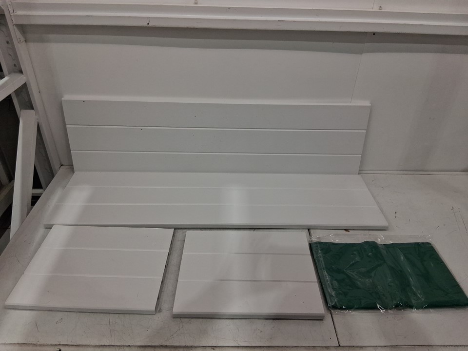 The panels have a little bit of dirt and some hair on them due to previous use; it will only take a quick wipe down to clean. Please note that you will also need some hardware to assemble the planter box.