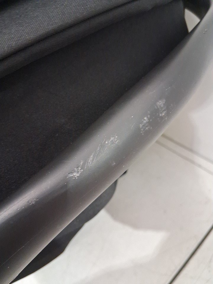 There are scuff marks on the handle and the shade cover due to previous use. Please note that the shade cover is loose on the one side, but it still functions properly. (Please see photos)