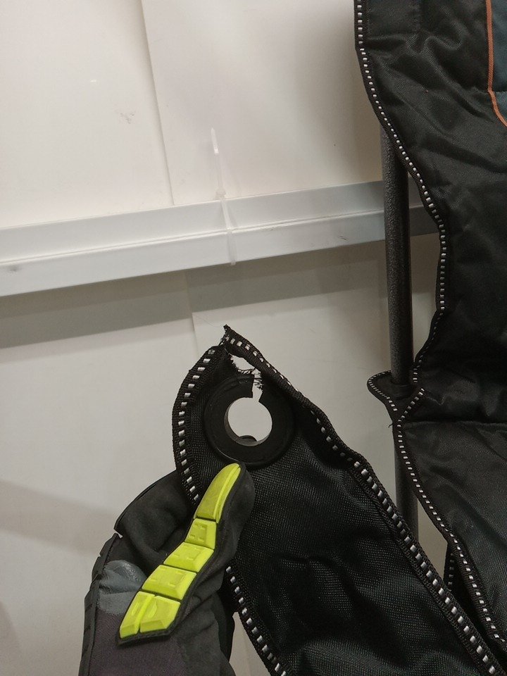 the right hand rest is detached from the chair and there is dust and dirt from previous use. see photos