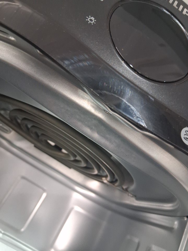 Item tested for basic power. Item has marks and scuffs from previous use. Also, it has a dent at the front side. (See photos)