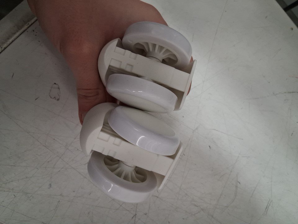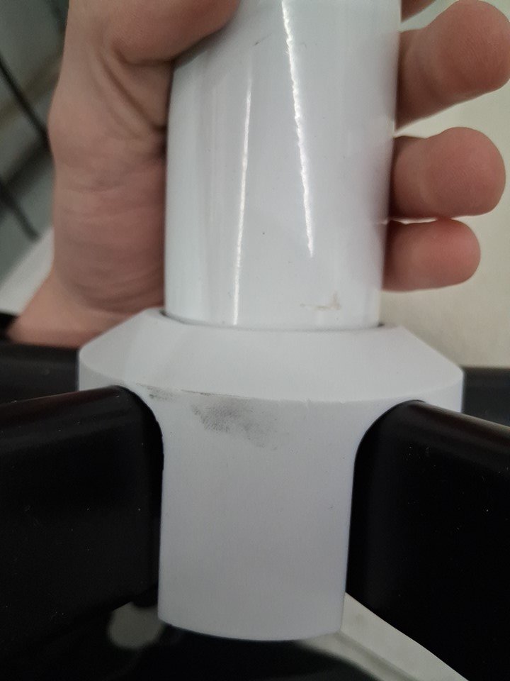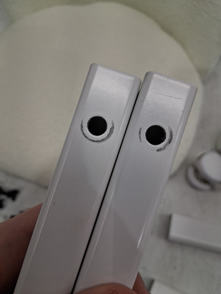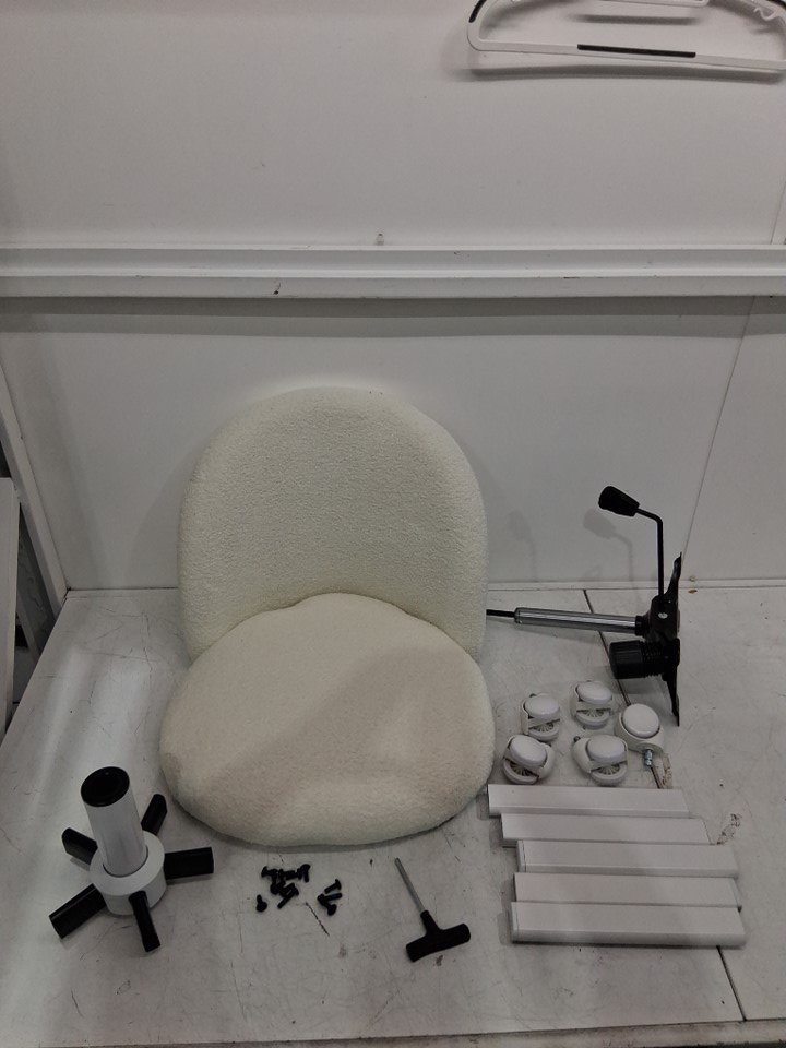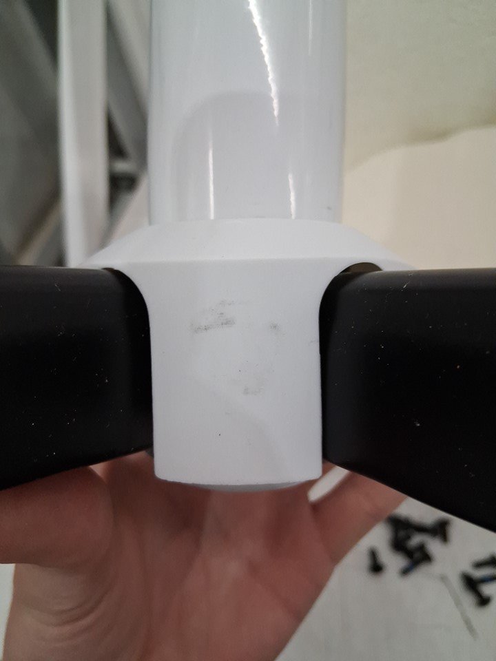 There are a couple of scuff marks on the piece that connects the chairs legs together, and there are washer marks on the holes which indicates previous use/assembly.