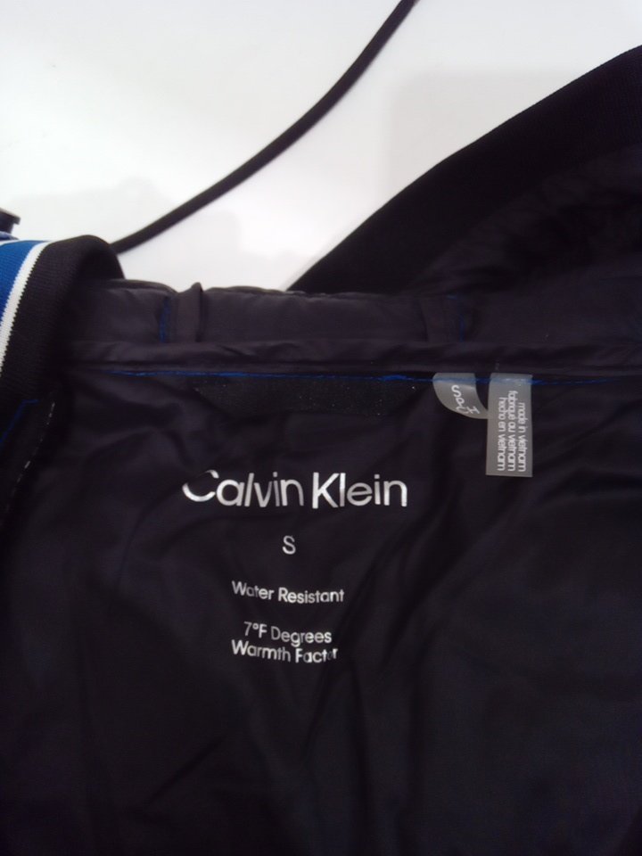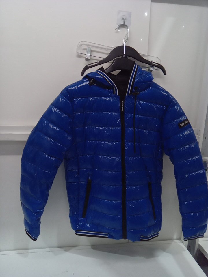 MENS CALVIN KLEIN HOODED SUPER SHINE PUFFER JACKET - small - BLUE