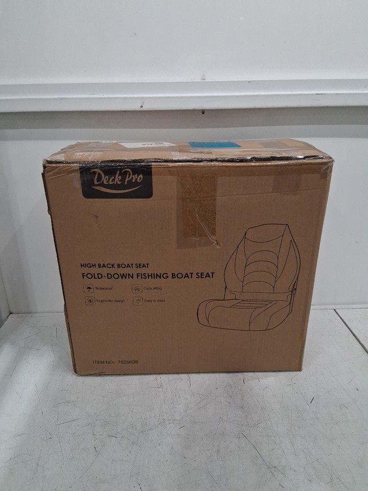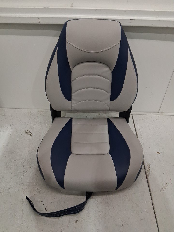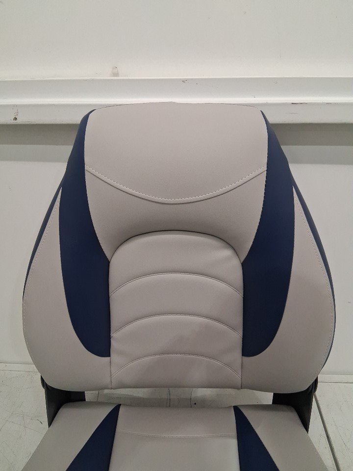 Deck Pro Deluxe Foldable High Back Fishing Boat Seat - Navy/Light Grey