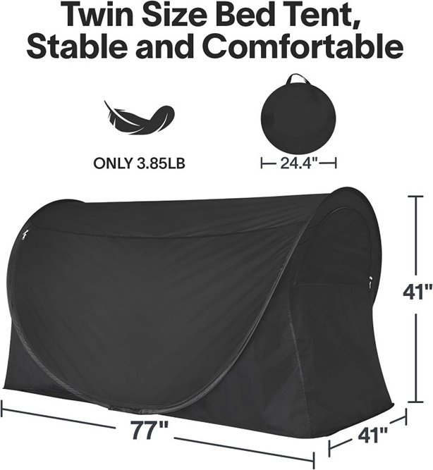 indoor breathable pop-up bed tent canopy shelter - 40" X 77" - black