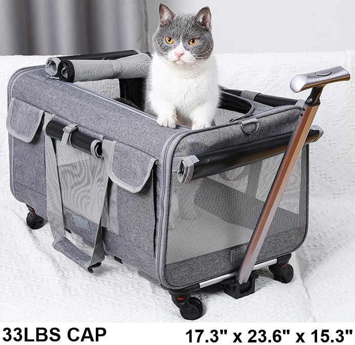 axGear Rolling Pet Carrier Trolley - 33LBS CAP - 17.3" x 23.6" x 15.3" - GREY/BLACK (MODEL: ‎PT-BAG-STR)