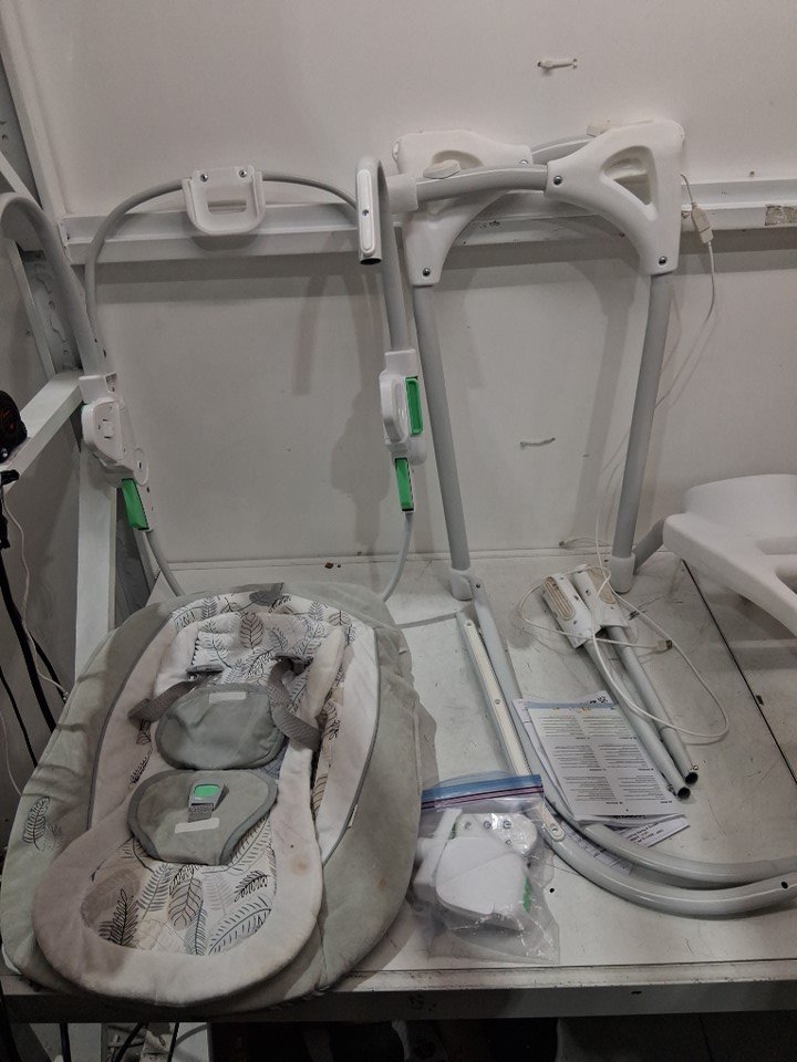 tested for power. item has scratches/stains on parts and the seat has previous personal odor which need to be washed before using it.