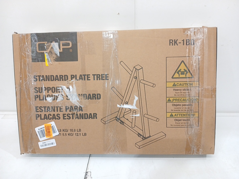 CAP BARBELL A-FRAME slandered WEIGHT PLATE RACK/TREE - FOR 1" WEIGHT PLATES - 5 rack - 300lb MAX - BLACK (MODEL: RK-1BB)