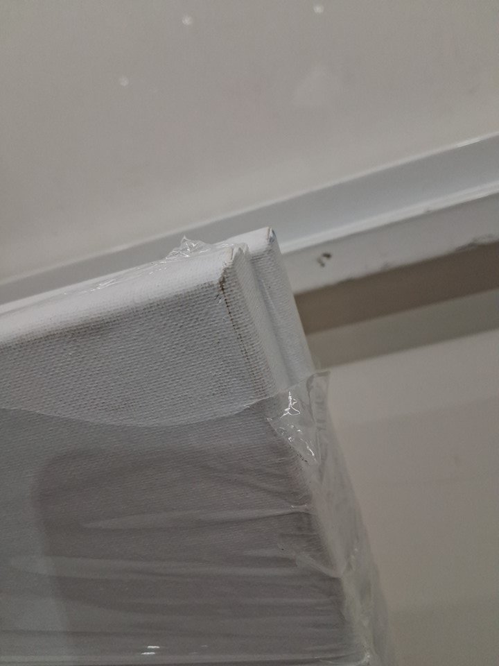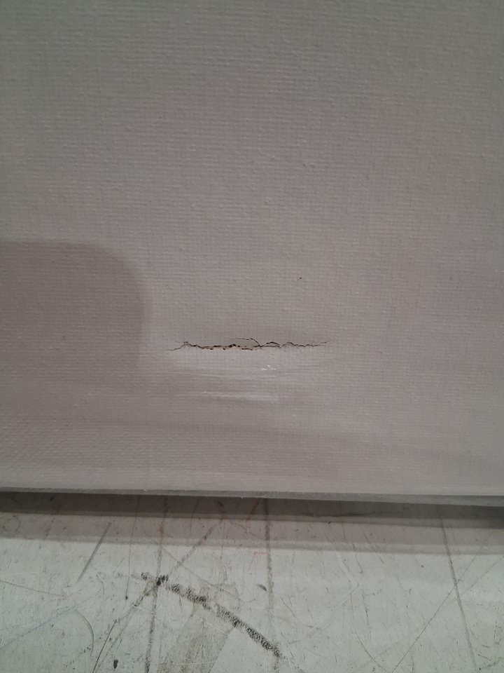 front canvas has very light tear and some dark markings around exposed edges from shipping