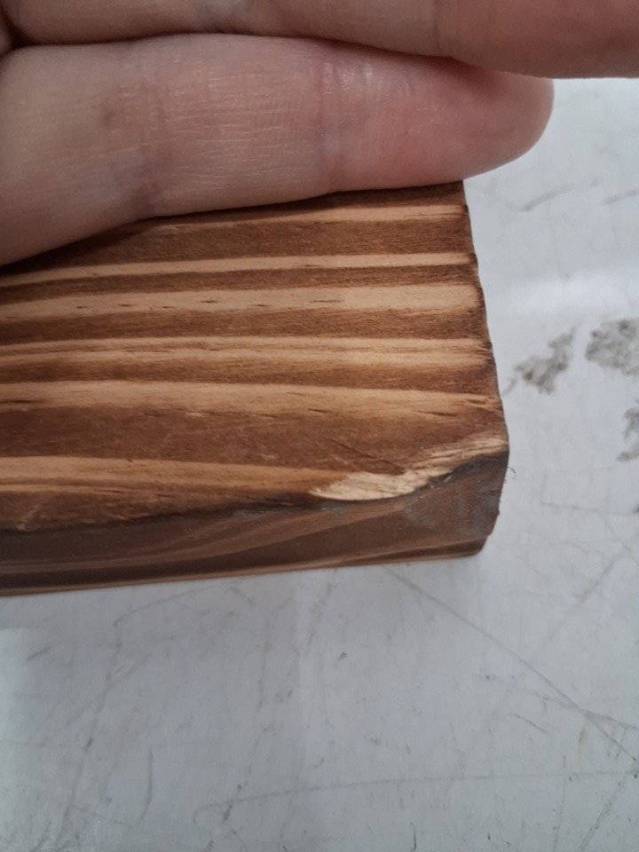 Product has a small bit of the wood splintered off (See photos)