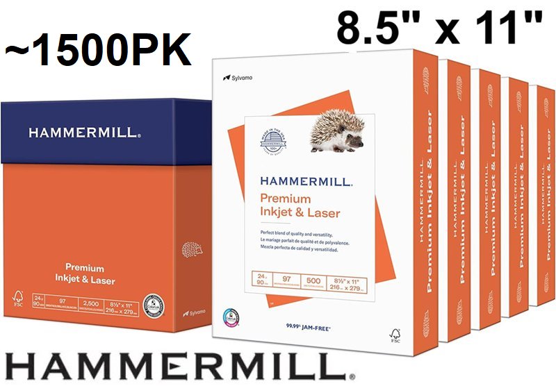 ~1500pk hammermill premium inkjet and laser printer paper - 8.5" x 11" - white (model:‎166140C)