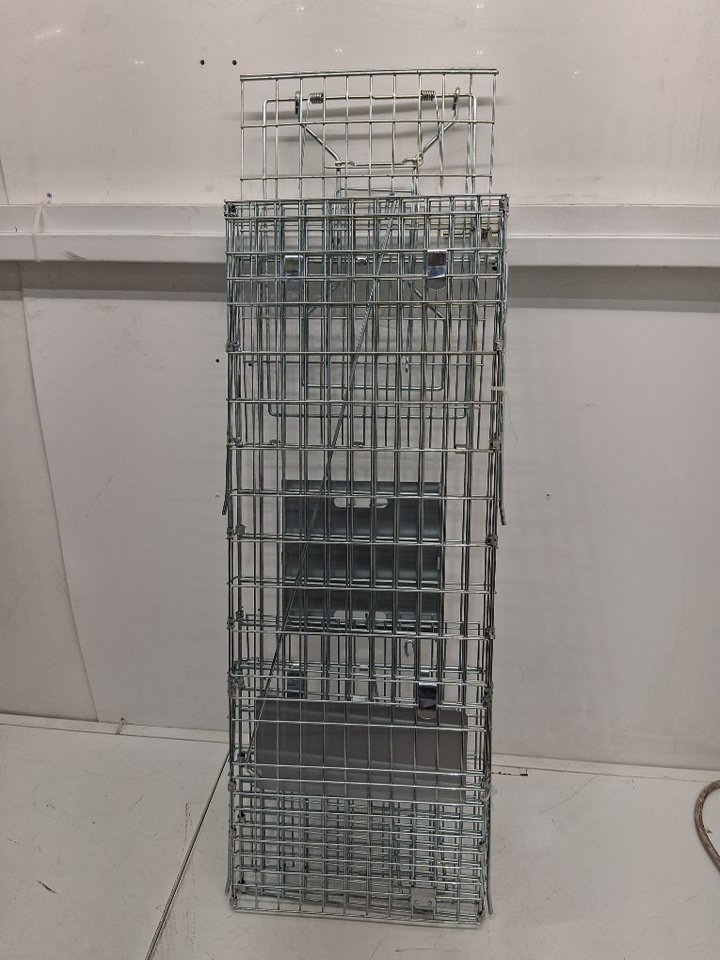 LIVE ANIMAL FOLDING TRAP CAGE FOR OUTDOOR - 32"X 12"X 10" - SILVER