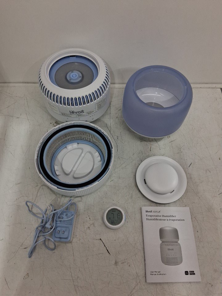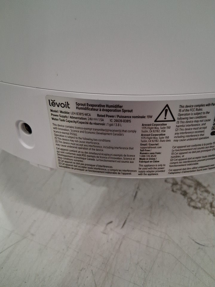 There are a couple water droplets on one of the pieces due to previous use. The humidifier was tested for basic power.