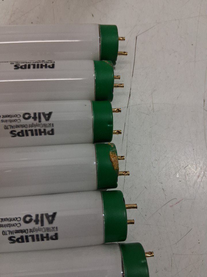 There are some black scuff marks on the tube lights and some orange residue there is also an odour, see photos.
