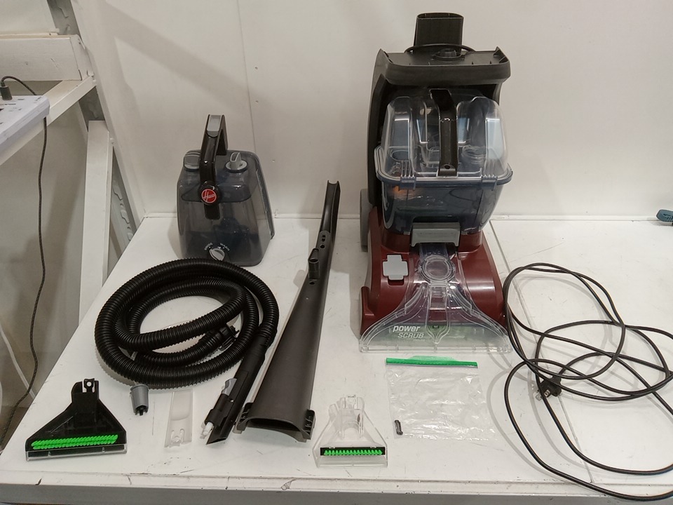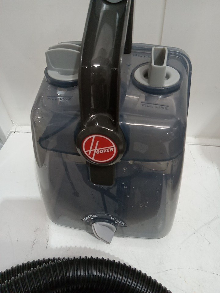Missing the carpet cleaner solution, has water droplets in the tank from previous use. tested for power. see photos