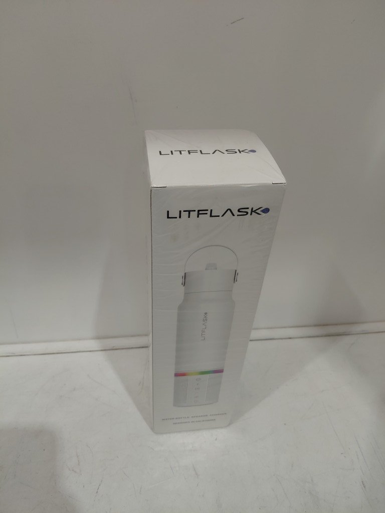 litflask double insulated stainless steel flask with built in bluetooth speaker - 20oz - WHITE