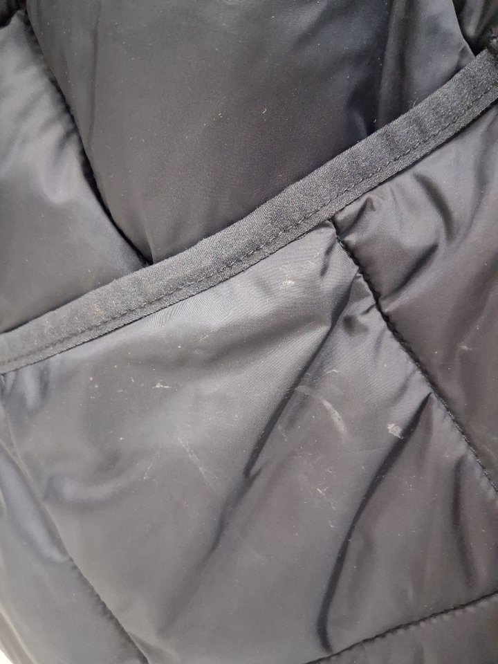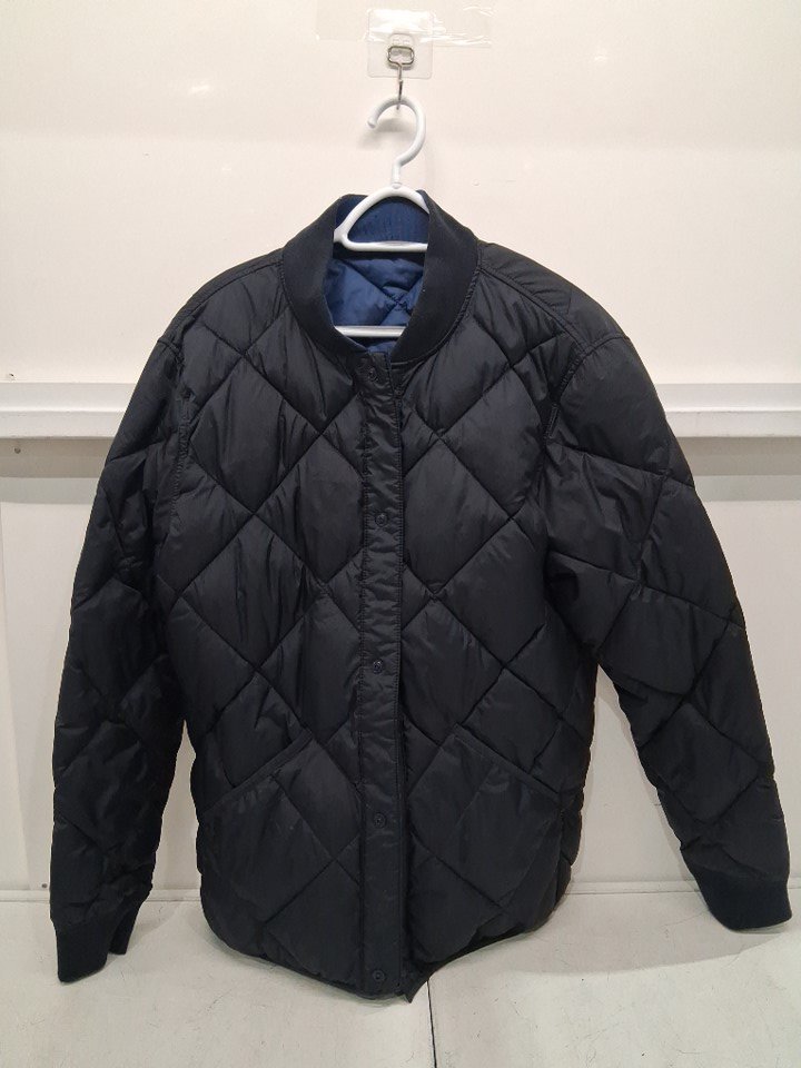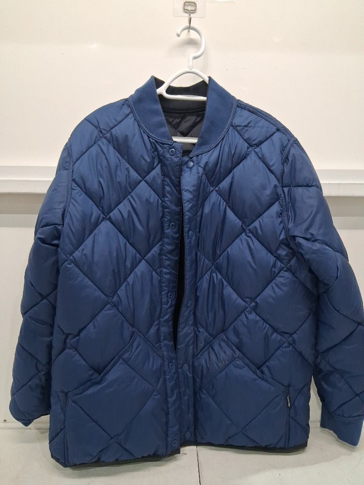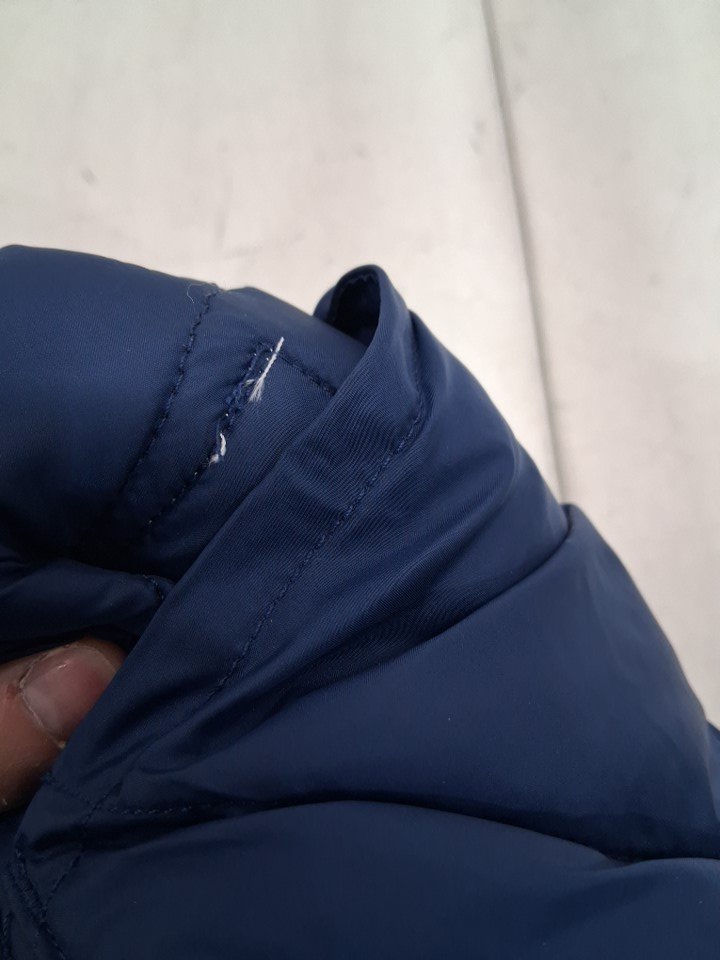 There is some dirt on jacket, and the size tag has been removed it appears to be about a large size from inspected by our staff, see photos.