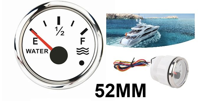 Keenso 52MM Water Level Gauge For RV, Boat – Color Backlight – 240‑33 Ohm Sender Range – DC 9‑32 V –Yacht White Dial / Silver Bezel (model:‎ Keensogz04btaonv-130)