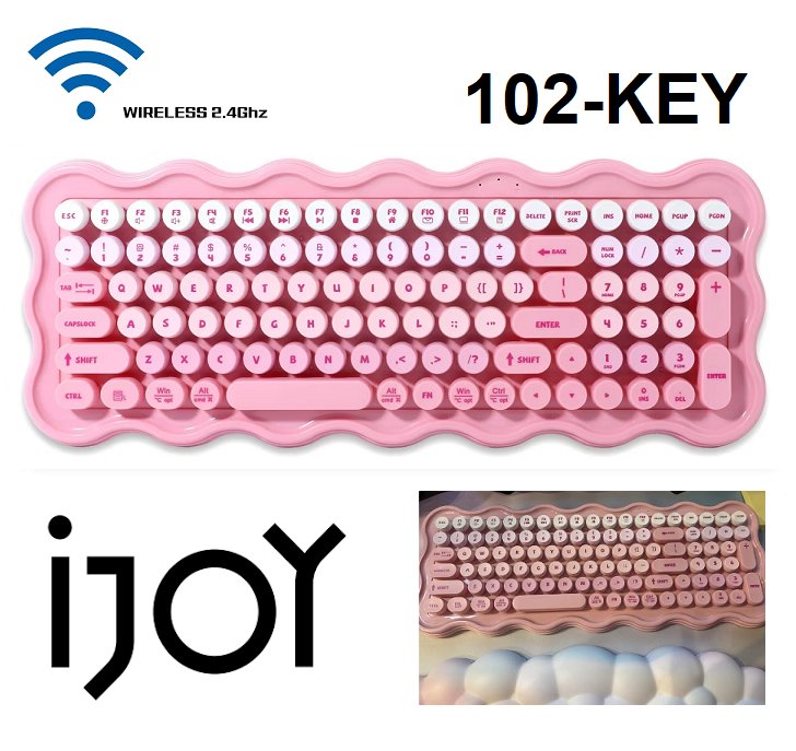 ijoy wireless 102-key wave keyboard WITH 2.4GHZ receiver & BUILT-IN KICKSTANDS - PINK (model: IJ10498-TT)