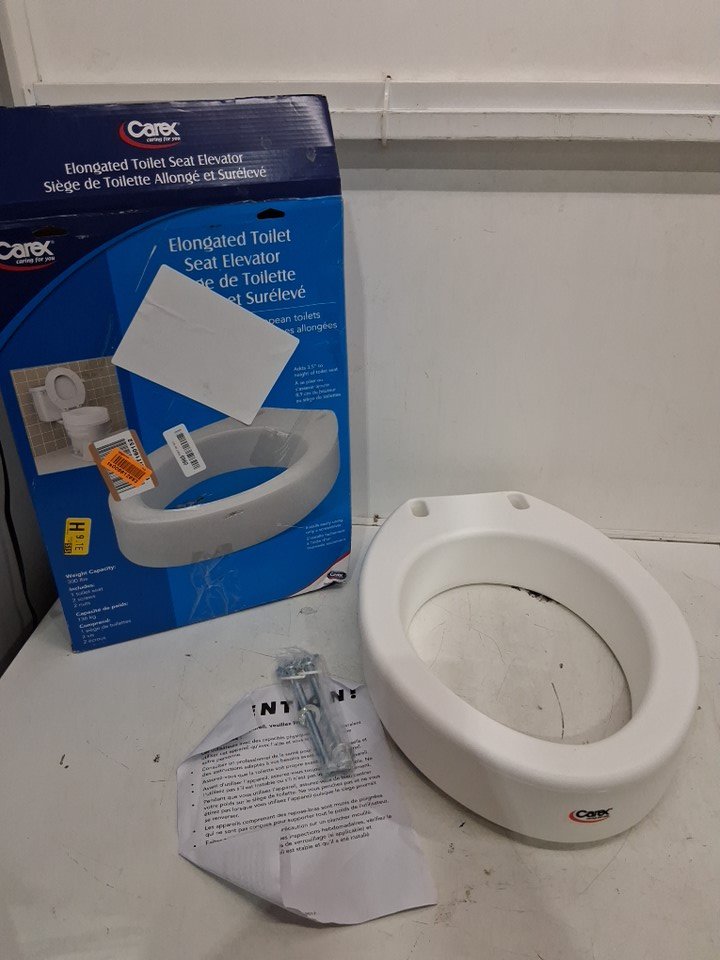 CAREX HEALTH BRANDS ELONGATED TOILET SEAT ELEVATOR - 300LBS CAP - 3.5" - WHITE (MODEL: B30800)