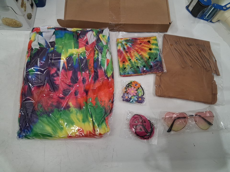 5PC WOMENS MORPH COSTUMES SHORT HIPPIE DRESS - large - MULTI COLOUR