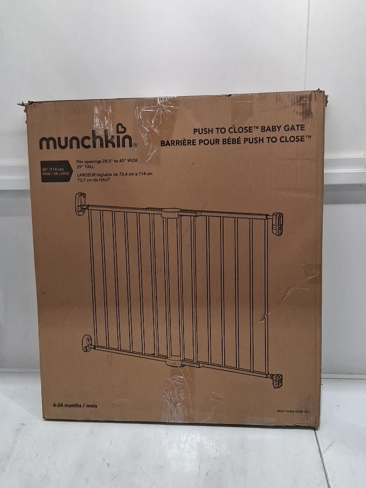 MUNCHKIN PUSH TO CLOSE BABY GATE FOR STAIRS WITH HARDWARE - 27" x 30.5" x 2.25" - BLACK - (MODEL: 46777001-SIOC)