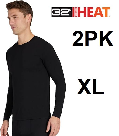 2PK Men's 32 DEGREES Heat Base Layer Long Sleeve Crew Neck Tee shirt - EXTRA LARGE - black - (STYLE:1927982)