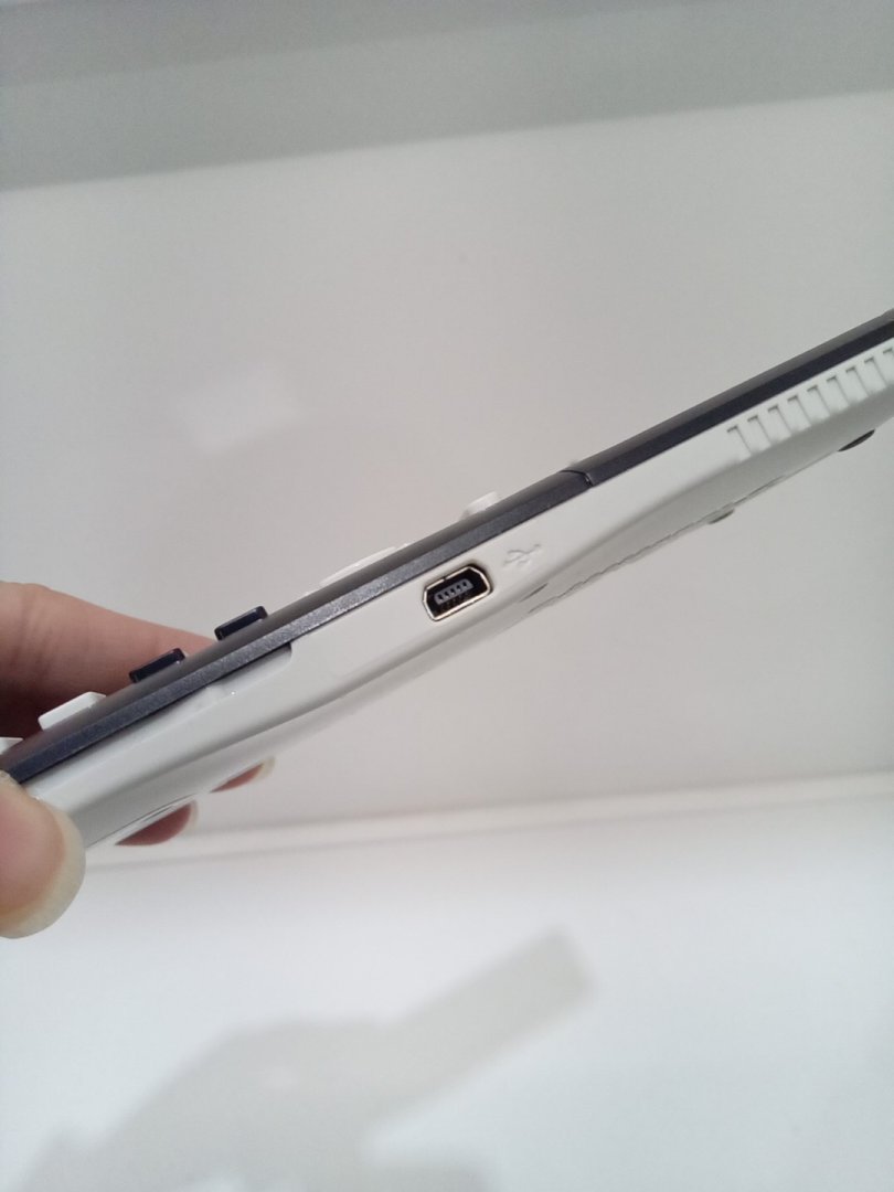 Markings on the screen including a vertical scratch along the left bezel from prior use. Set is missing the charging cable, which is replaceable, and we were therefore unable to test and charge the item.