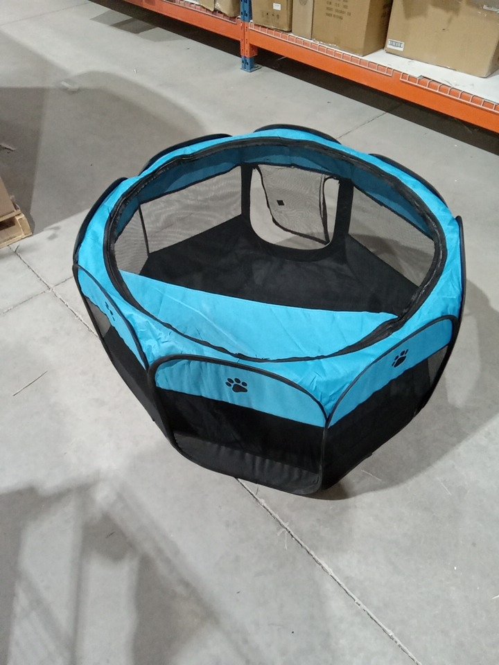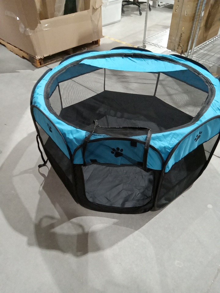 Pet Playpen Carrier Pop Up/collapsible Tent 8-Panel Mesh Cover - 40" - black/blue