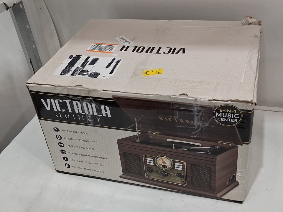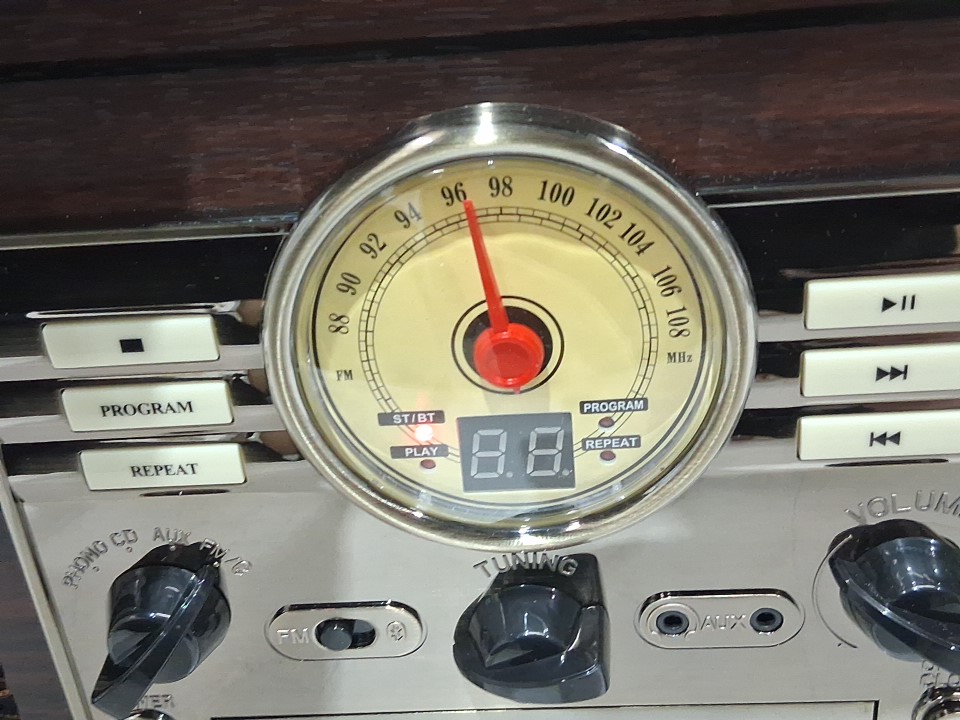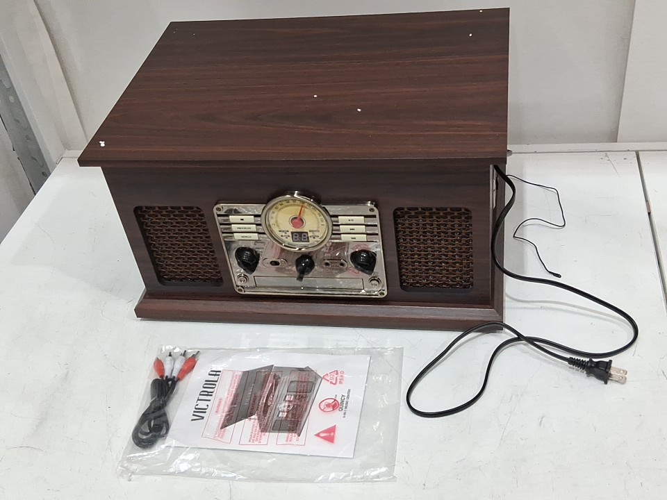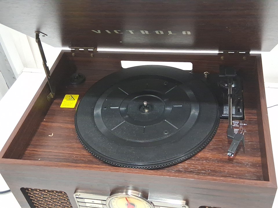 **Tested for power, fm radio, bluetooth.** Item did not produce audio when playing a vinyl record, likely requires a replacement cartridge, see photos.