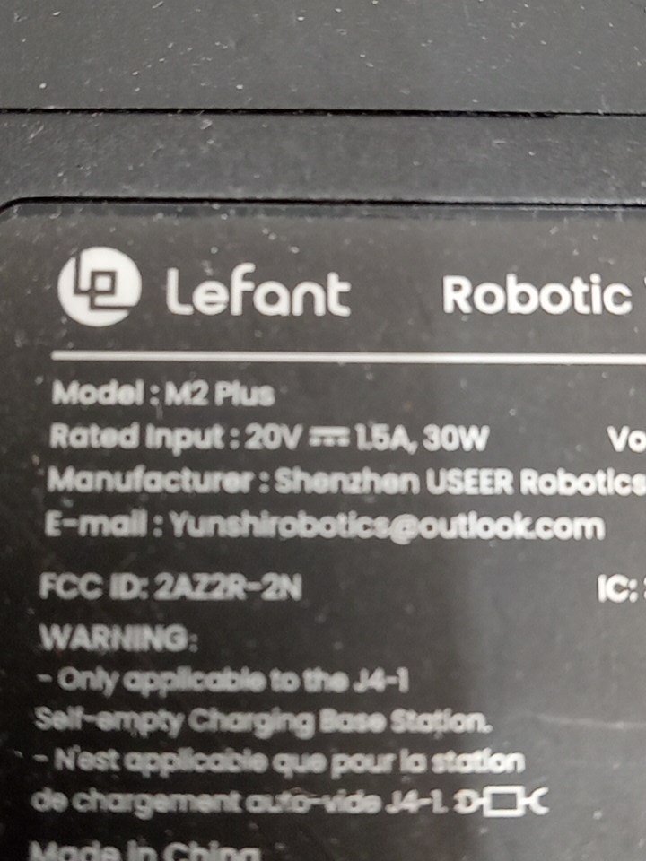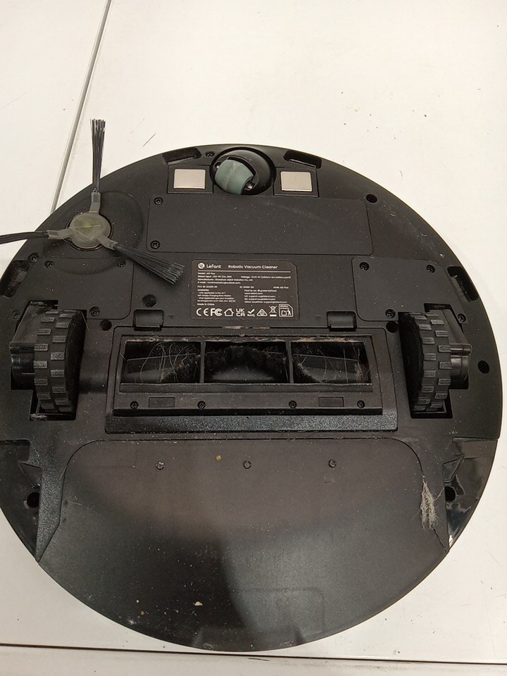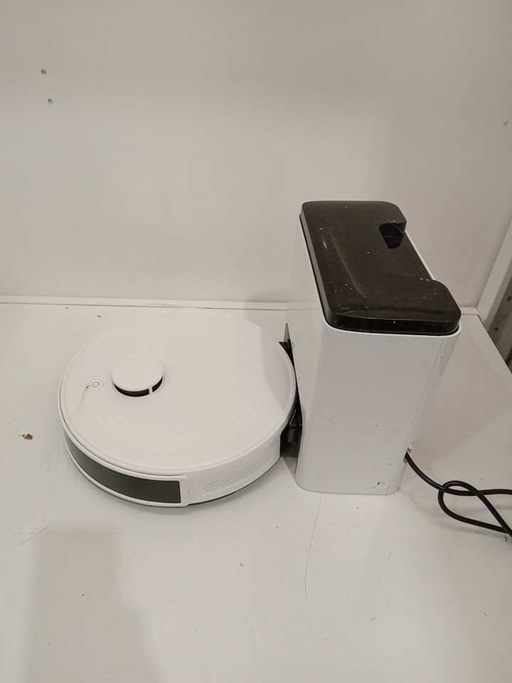 Item tested for power, charging, basic functionality via the button on the robot vacuum. Unable to fully test item due to it's nature and the limitations on our network. There is wear on the side brush and main brush as a result from previous use. As well as dust/debris on/inside both the robot vacuum and the base. The mop pads are missing and customer will require purchasing them in order to effectively use the item. Also we recommend the customer thoroughly clean up the item prior to using it to ensure it works as intended. There is also no extra filter or dustbin bag. See attached photos.
